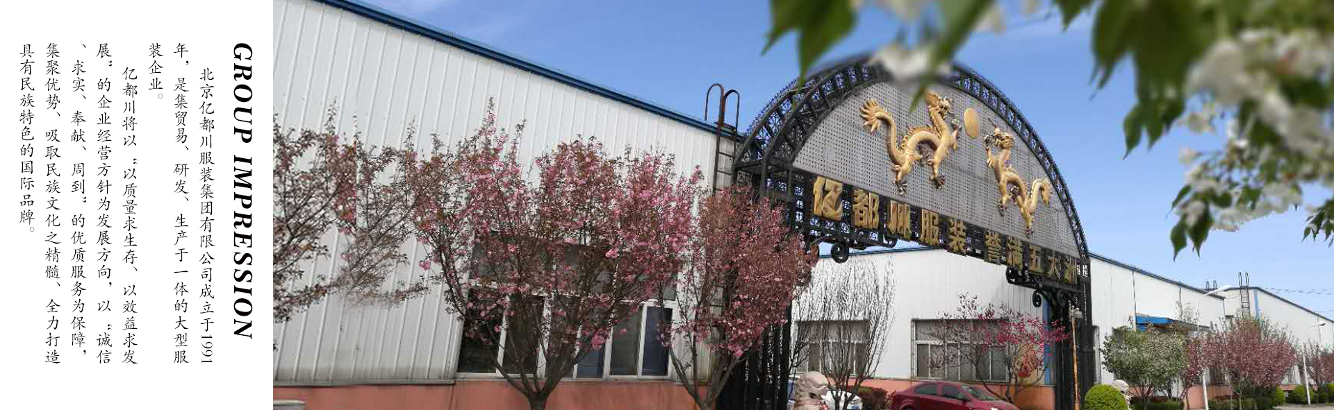北京億都川服(fu)(fu)裝(zhuang)(zhuang)集(ji)團有限公(gong)司始(shi)建于一(yi)九九一(yi)年,是集(ji)貿(mao)易、研發、生產于一(yi)體的大型服(fu)(fu)裝(zhuang)(zhuang)企業,產品涵蓋西服(fu)(fu)套(tao)裝(zhuang)(zhuang)、各類(lei)工(gong)裝(zhuang)(zhuang)、軍需被裝(zhuang)(zhuang)產品及出口(kou)加工(gong)類(lei)服(fu)(fu)裝(zhuang)(zhuang)等。公(gong)司是“北京市企業技術中心”,是軍隊定點生產企業,警服生產目錄企業,也是衛生局、國、地稅等機關團體、企業單位的服裝定點加工企業。公司自創“億都川”品牌,集設計、生產、銷售于一體,服裝選料精湛、工藝先進、做工考究,男裝款式瀟灑沉穩,女裝式樣端莊簡潔。公司擁有獨立進出口權,服裝加工出口業務一直是公司利潤的重點,多年的出口業務煉就了企業過硬的產品質量。