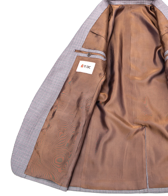 毛襯(chen)的工(gong)藝、精細(xi)打(da)磨的牛角扣(kou)、手工(gong)縫制的駁(bo)頭(tou)和扣(kou)眼等無一不彰顯(xian)著高級定制應有的水(shui)準。